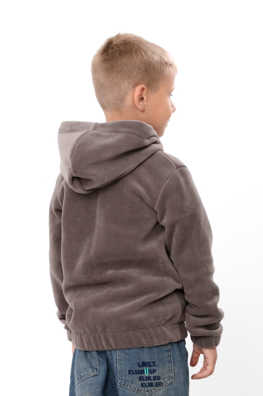 A boys? hoodie made of plain fleece is a warm and comfortable sweatshirt for cooler weather. Fabric: plain fleece, 100% polyester, height: 104-134. The fleece retains warmth, allows air circulation, and feels soft on the skin, providing comfort during active play, walks, and school activities. The model features a hood with drawstrings, a front zipper, and elastic cuffs on the sleeves and hem that do not restrict movement. The plain design is easy to pair with jeans, shorts, or sweatpants. Practical in care ? dries quickly, retains shape and color. Perfect choice for everyday wear and active leisure.