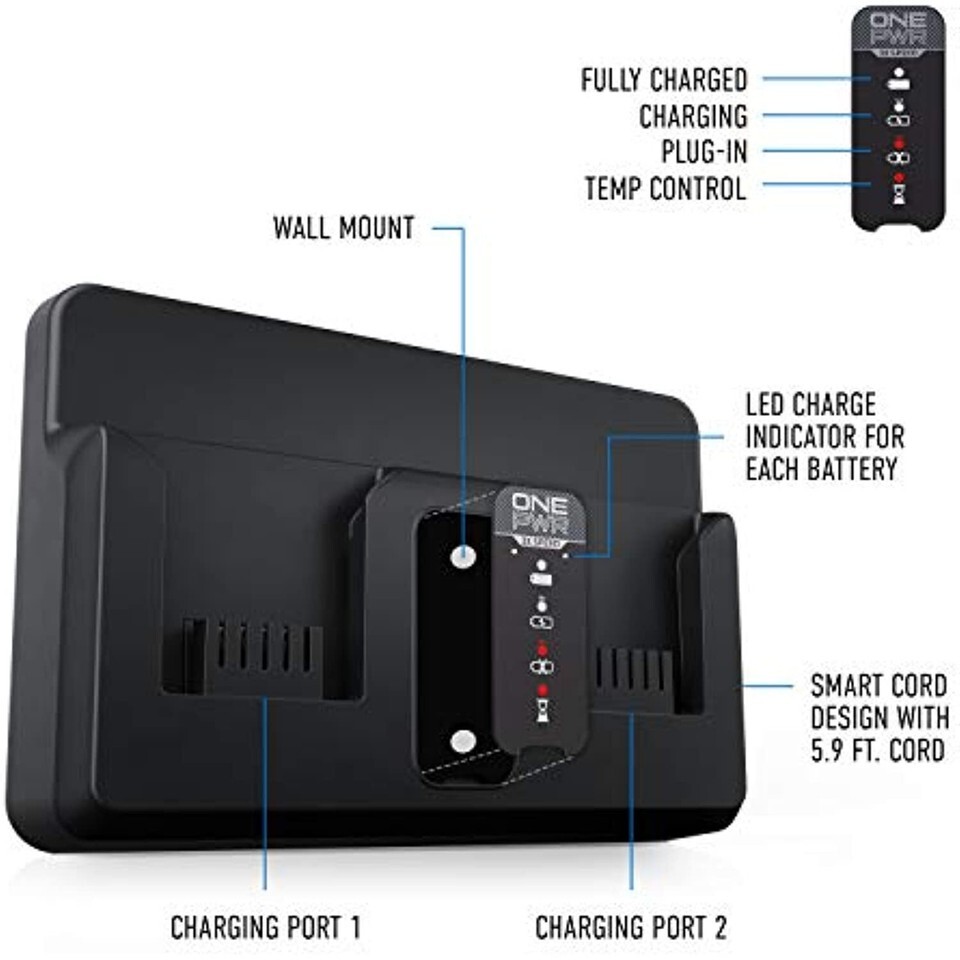 - Hoover ONEPWR Dual Bay Charger, Compact 2 Battery Charging Hub, BH05200, Black