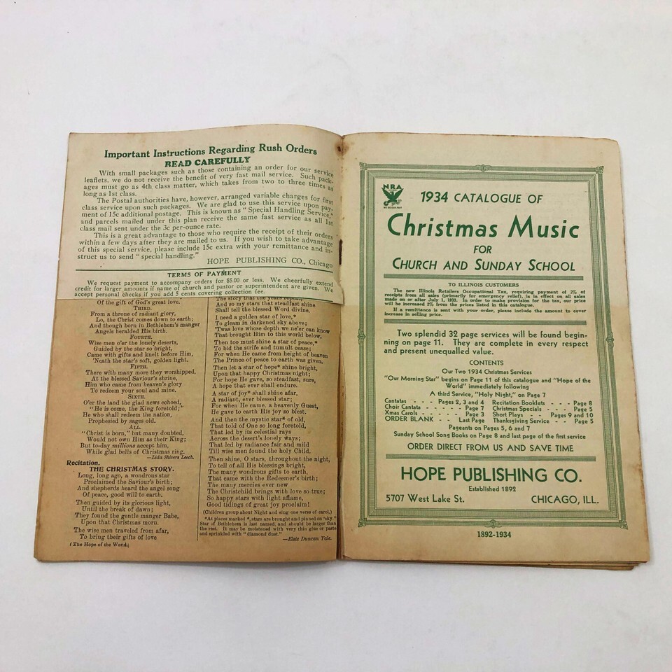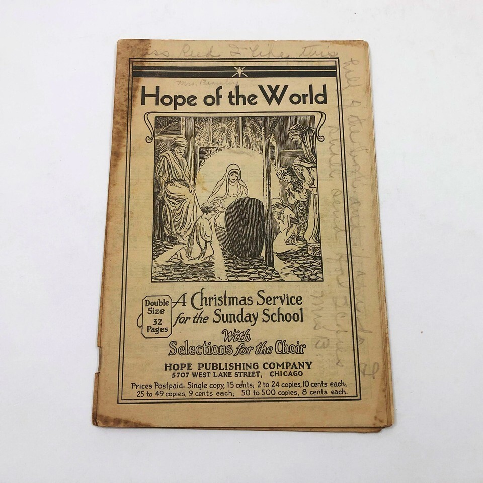 - Hope of the World A Christmas Service Sunday School 30 pages 1927 Vintage