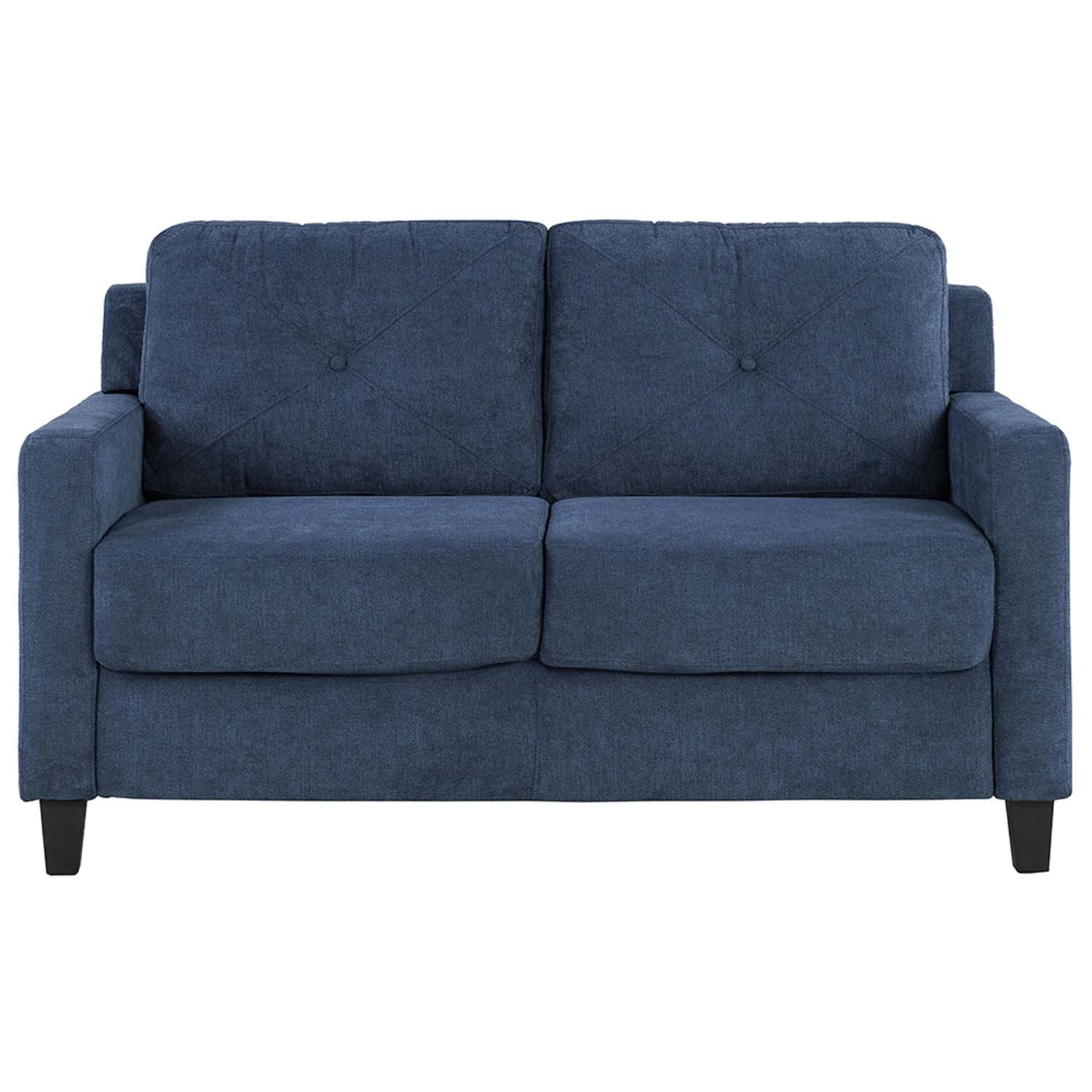 Experience ultimate comfort and style with Horatio navy Chenille loveseat.The tight back and seat cushions ensure a comfortable seating experience, supported by pocket coil construction and a sturdy wooden inner frame. This set is perfect for creating a modern, elegant living space that combines style and comfort seamlessly.