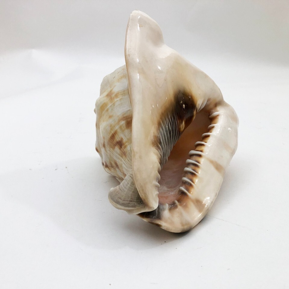 - Horned Tiger Striped Conch Shell 7x5x5 inches Vintage large