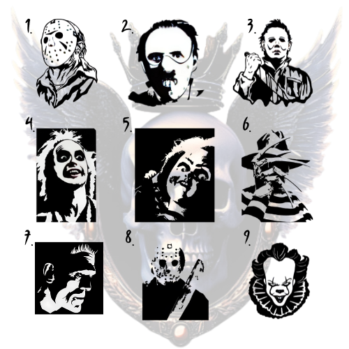 - Horror Movie Premium Vinyl Decals, Jason, Freddy, Michael, Chucky, Hannibal