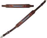 Challenger horse tack wither breast collar strap made from premium genuine brown full grain leather. Wither strap helps keep breast collar in perfect position. All tooling, and carving is done by hand. Beautifully accented with a tooled and painted floral design, with turquoise buckstitch. Easily adjustable, features 2 quick (trigger) snaps on both ends. Complete with rust-free stainless steel hardware.
