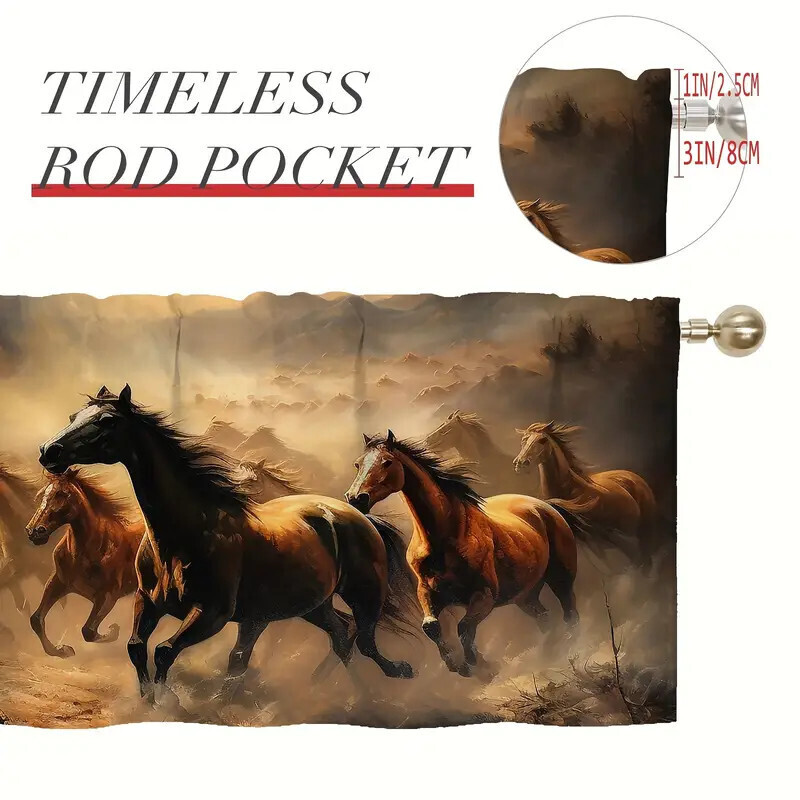 Horses Galloping Herd Rod Pocket Window Valance, Modern Rustic, 54" x 18" printed valance is extraordinary, tranquil and