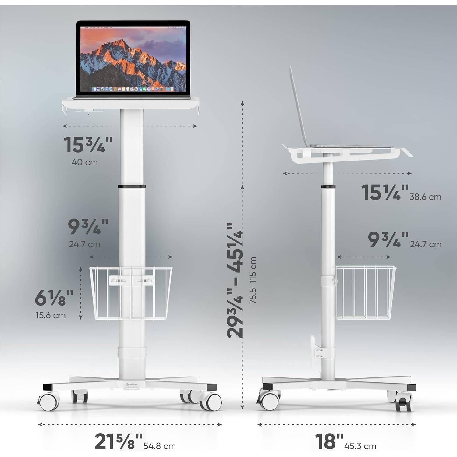 - Hospital Style White Mobile Stand-Up Computer Desk Portable Workstation