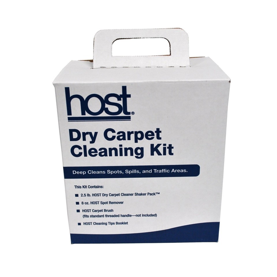 The Host Dry Carpet Cleaning Kit contains everything you need to deep clean spots, spills and traffic areas quickly and conveniently. Attach a handle to the enclosed brush for easy stand-up cleaning. HOST Dry Carpet Cleaner is all natural and contains a balanced blend of moisture, detergent and a small amount of safe-to-use-solvents. HOST dissolves, absorbs and traps greasy, oily dirt, spots and odors as it's brushed into the carpet.