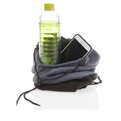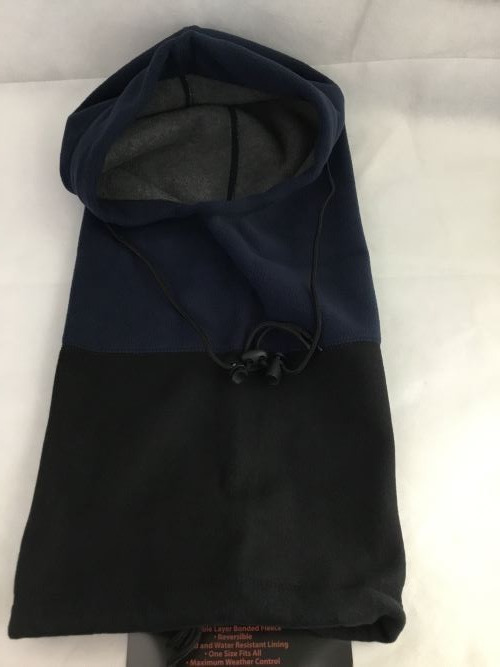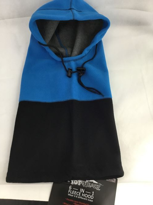 6 in one fleece hood, reversible. Converts to: Balaclava, Facemask, Beanie, Hood, Scarf-Neck Warmer, Bag