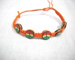 - HOT ORANGE MACRAME w RASTA COLOR PEACE SIGN BEADS REGGAE TIE BRACELET / ANKLET