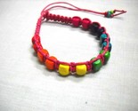 - HOT PINK WEAVE w COLORFUL WOOD BEADS BLUE GREEN PURPLE TIE BRACELET OR ANKLET