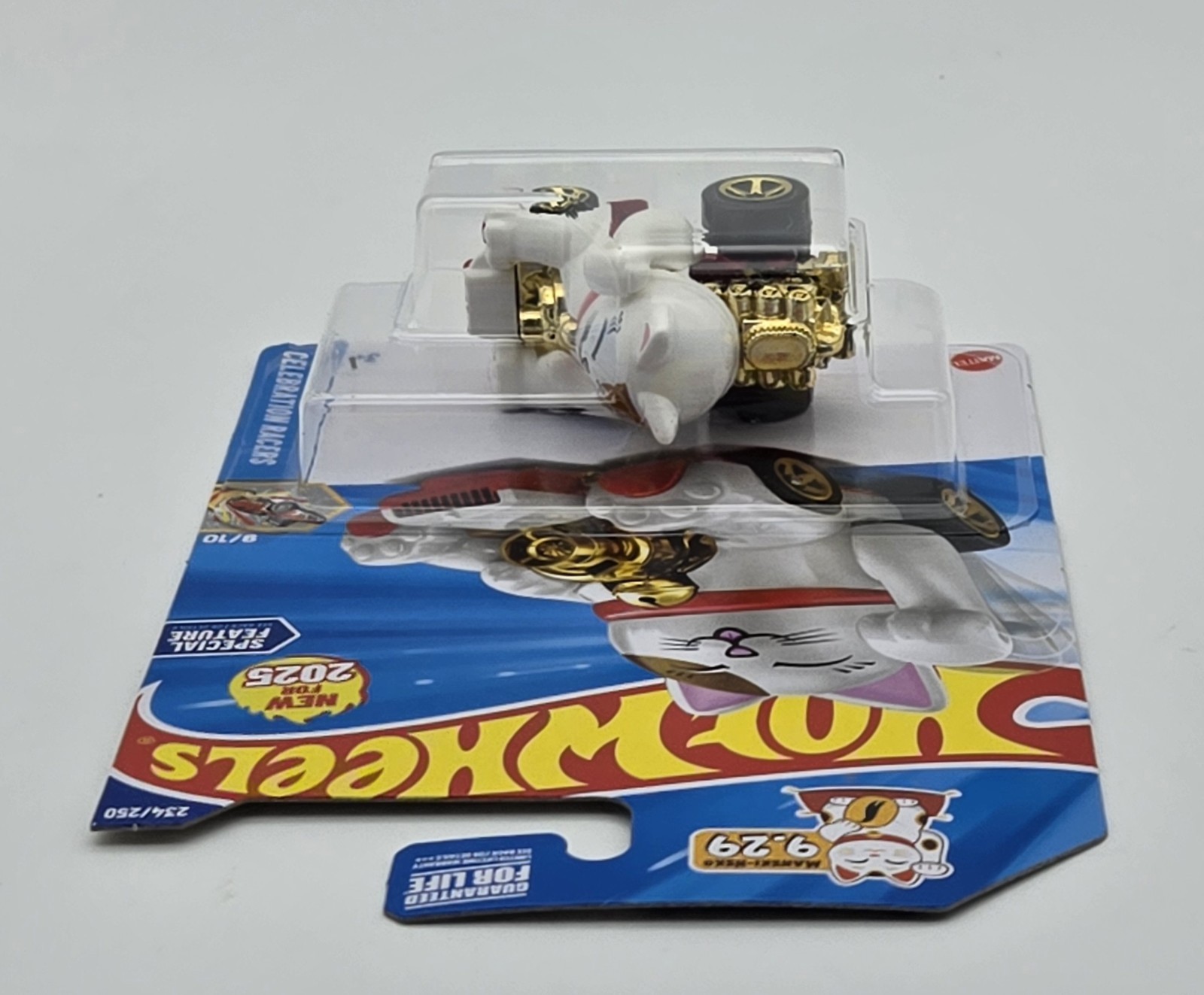 Celebrate luck and style with this 2025 Hot Wheels Feline Lucky, featuring the iconic waving cat design from the Celebration Racers lineup.