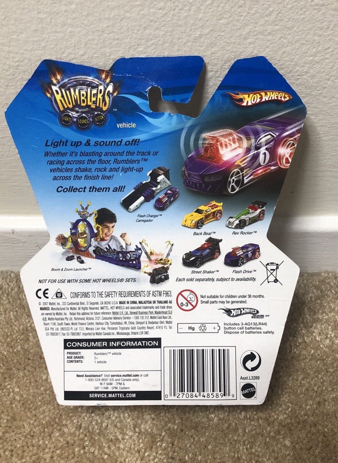 Hot Wheels Rumblers Rev Rocker Lights -Sounds -Action/ Street Shaker Blue Flames