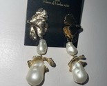 House Of Harlow 1960 Gold Tone Leaf Faux Pearl Dangle Drop Earrings New