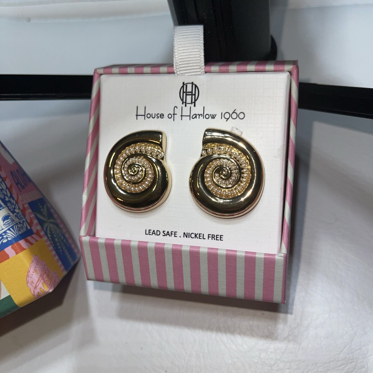 - House Of Harlow 1960 Goldtone Pearl Snail Shell Earrings NEW IN BOX