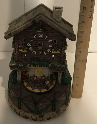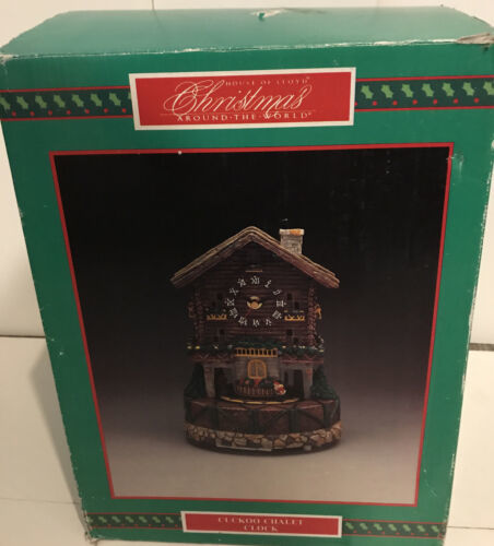 House Of Lloyd Christmas Around The World Cuckoo Chalet Music Clock. 10" tall by 7" wide. It is in its original box. It is in good condition. Great piece to decorate your Christmas's village.