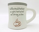 EUC, Excellent Used Condition. Those who love there coffee straight. "Coffee should be black as night, hot as hell and strong as love" printed on your perfect coffee mug. Holds 12 to 14 ounces of right out of the pot hot coffee. No cracks chips or stains.