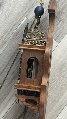 It measures approx. 20 inches high, 8 1/4 inches wide and 5 inches deep. It is missing the weights so can't be tested, therefore is being sold as is. The case in in beautiful condition as shown.