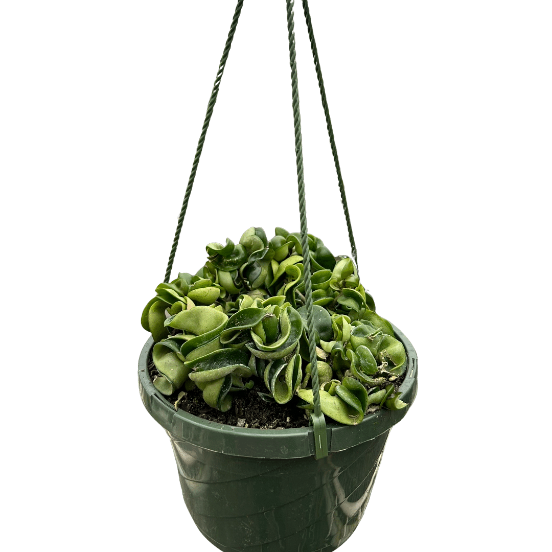 Botanical Name: Hoya Hindu RopeCommon Name(s): Hindu Rope, Porcelain Flower, Wax Plant, Honey Plant, Krinkle CurlDescription: Unique Hindu rope plants, Hoya carnosa compacta, are draping succulent vines that produce clusters of star-shaped waxy flowers. The thick, twisted, curly, cupped leaves of a Hindu rope plant are why it's often called Krinkle Kurl. Hindu rope plants can be found in solid green or with variegated leaves. This type of hoya plant is very easy to care for as long as you have plenty of light and are careful with your water.*Limit 2 Per Customer*