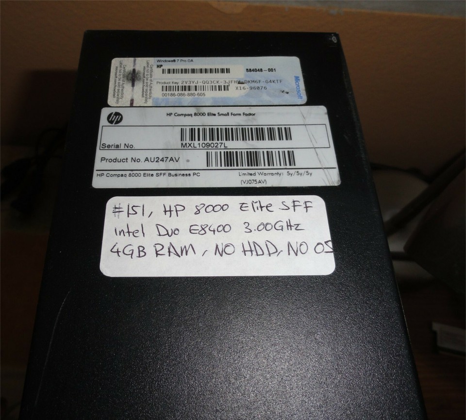 - HP 8000 Elite SFF Quad Core E8400 3.00Ghz 4GB Ram NO HDD, NO OS, #151