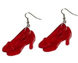HUGE Wizard of Oz inspired Huge RUBY SLIPPERS FUNKY EARRINGS Dorothy Gale Costume Charm Novelty Jewelry - BIG translucent classic RED glitter plastic charms, approx 1.75-inch (4.38cm) long x 1-inch (2.5cm) wide. Follow the Yellow Brick Road. Somewhere Over-the-Rainbow, There's No Place Like Home... You're definitely not in Kansas anymore!
