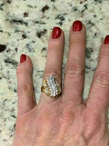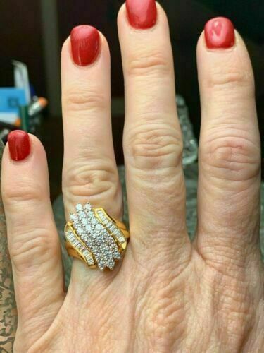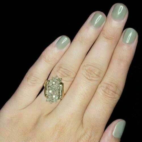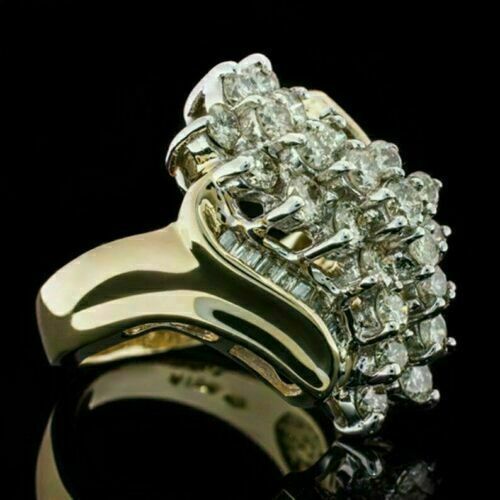 - Huge Estate 2.50Ct Diamond Cluster Statement Cocktail Ring 14K Yellow Gold Over