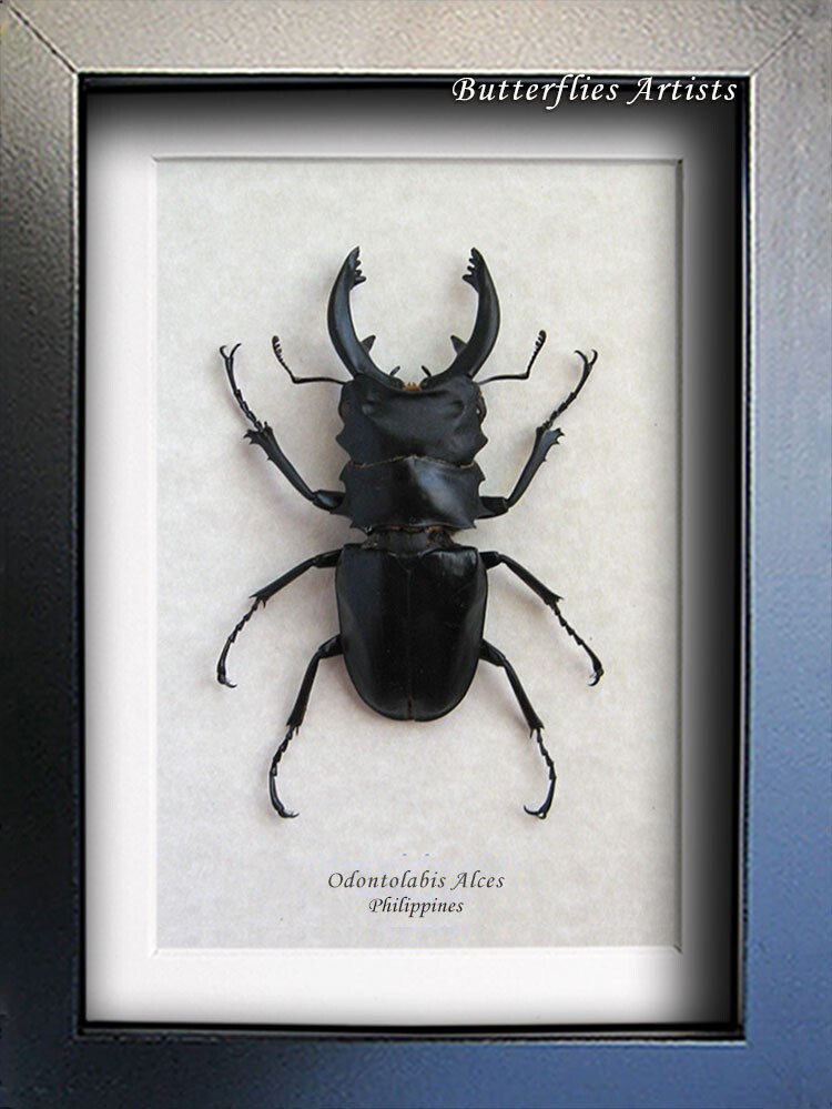 - Huge Stag Beetle Odontolabis Alces XL Real Framed Entomology Shadowbox
