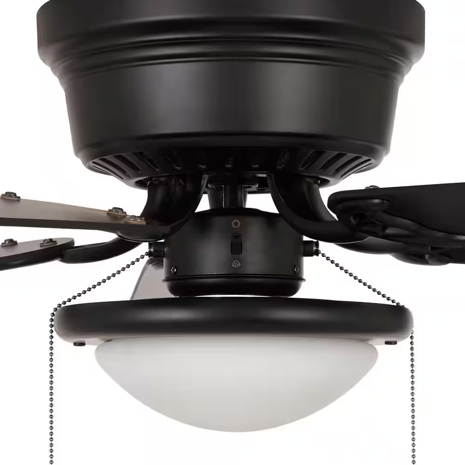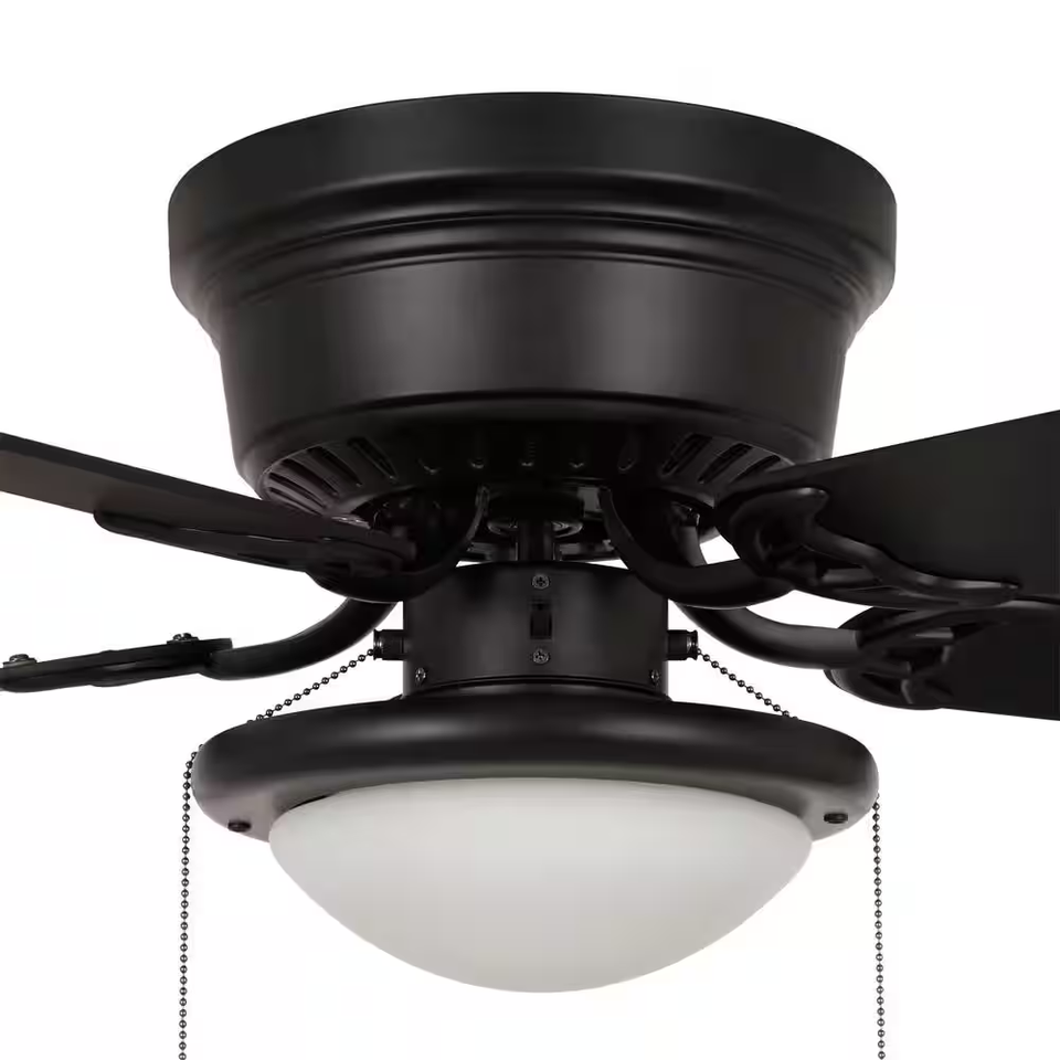 Optimize comfort in rooms with limited vertical space using this 52 in. Hugger Ceiling Fan. Designed specifically for low ceilings, its flush mount installation maximizes headroom while providing efficient air circulation. This indoor ceiling fan features a classic black finish and includes one 9W LED bulb, offering both cooling and illumination in one fixture. Control the 3-speed, quiet, reversible motor and light easily with the traditional pull chains. With 5 reversible blades showing black on one side and mahogany on the other, you can customize the look to match your bedroom, living room, or office decor. Stay comfortable year-round with reliable performance and a space-saving design.