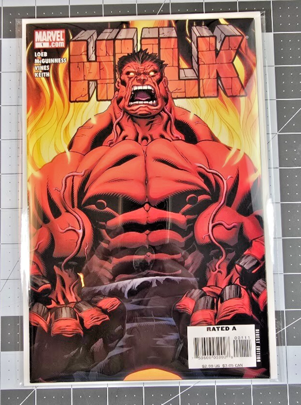 This landmark 2008 issue kicks off a bold new Hulk era with the explosive first cover appearance of Red Hulk, later revealed as General Thunderbolt Ross. Packed with cinematic art by Ed McGuinness and written by Jeph Loeb, it?s a must-own key for Hulk fans.