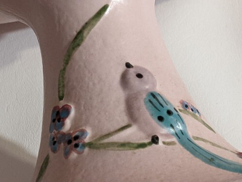 Hull Ceramiche Serenade Canzone Blu Uccelli Rosa Piedi con Piatto da Frutta 515