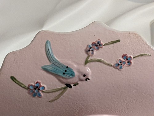 Up for sale is a used Vintage Hull Pottery 515 Serenade Songbirds Pink Pedestal Curved Fruit Bowl Stand.