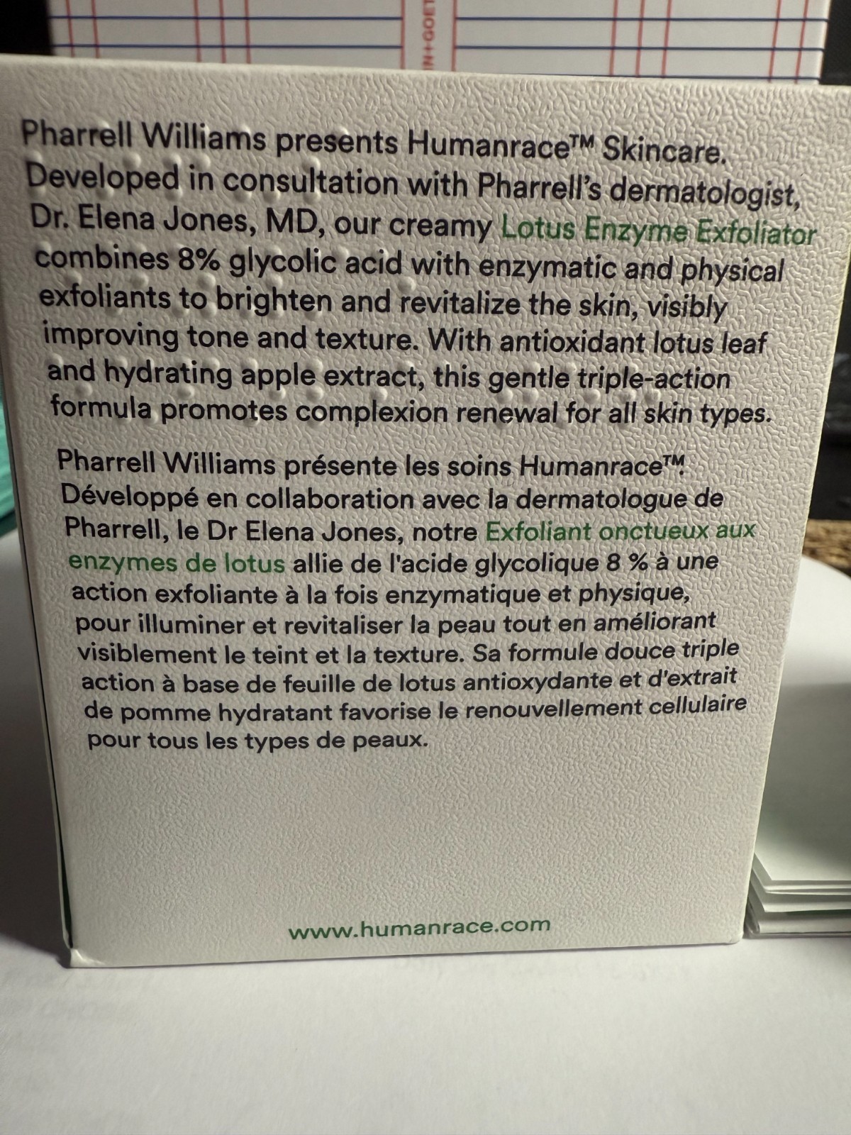- Humanrace Lotus Enzyme Exfoliator 8% Glycolic Acid, 2.4Fl Oz NEW IN A BOX