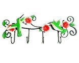 - Hummingbird Garden Wall Art Metal Scroll Vine Hand Painted Flowers 4-Hooks Gift