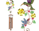 - Hummingbirds Hovering Over Nectar Flowers Art Glass Gemstones Metal Wind Chime