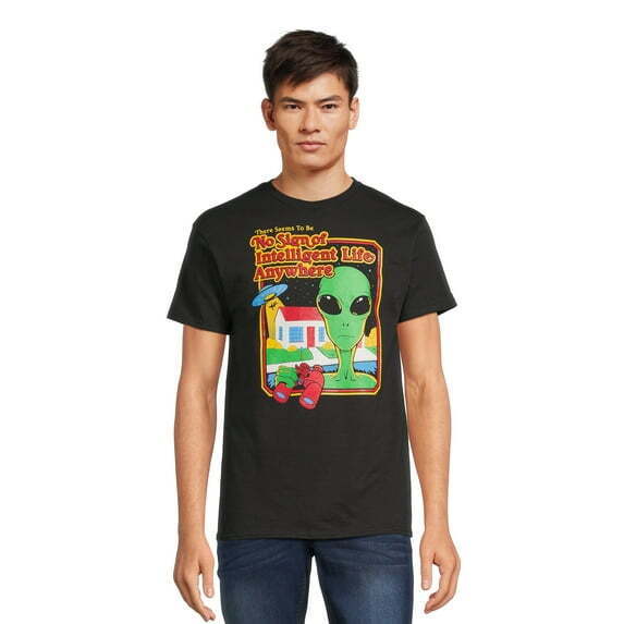 - Humor Men's No Intelligent Life Alien Short Sleeve Graphic Tee Size S Black