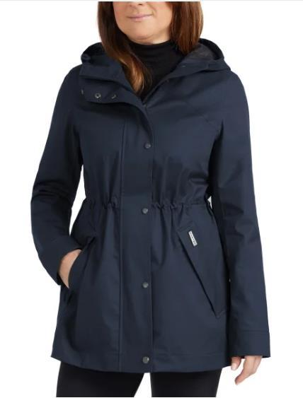 - Hunter Womens Rain Jacket Blue Water Resistant Hood Pocket Adjustable Waist