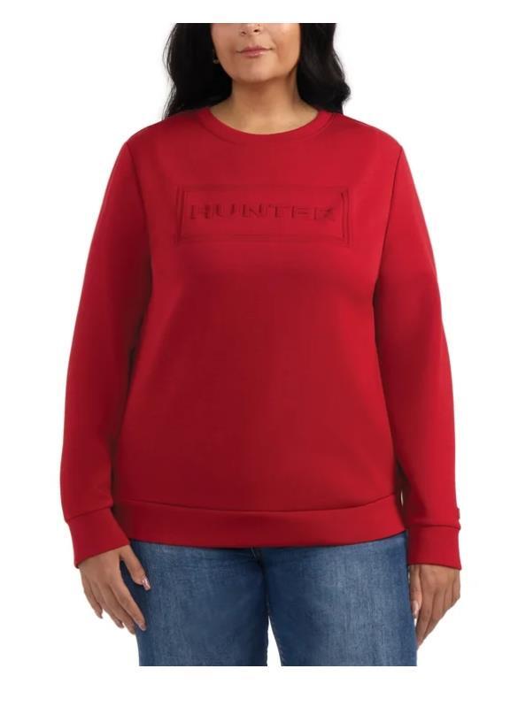 - Hunter Womens Sweatshirt Red Pullover Embossed Logo Long Sleeves Crewneck Soft