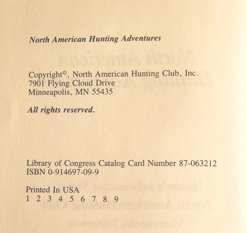 - Hunting Adventures Tactics North American Hunting Club Vtg 1989 1st Edition E35