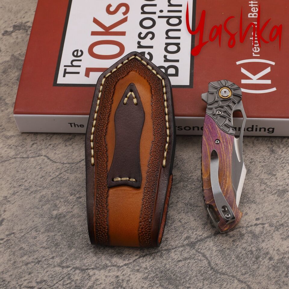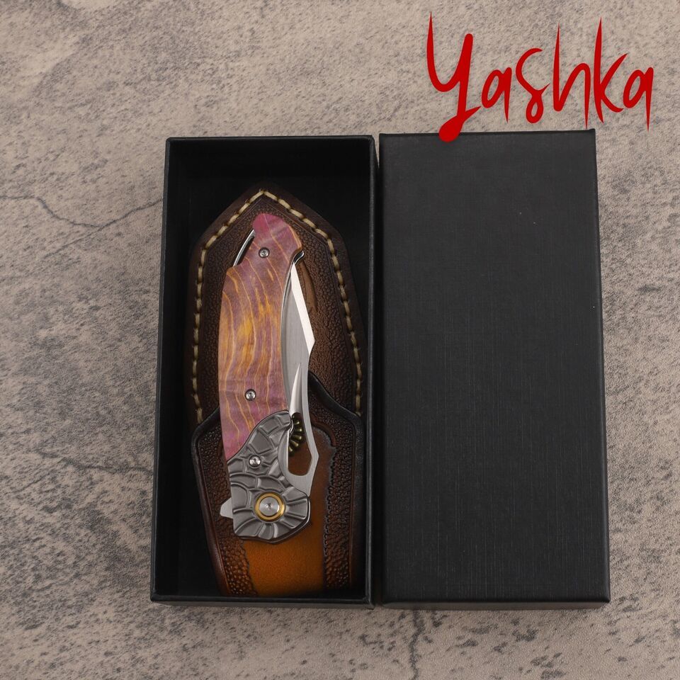 - Hunting Knife M390 Folding Blade Outdoor Camping Fishing Tools Leather Scabbard