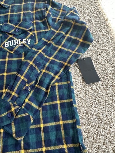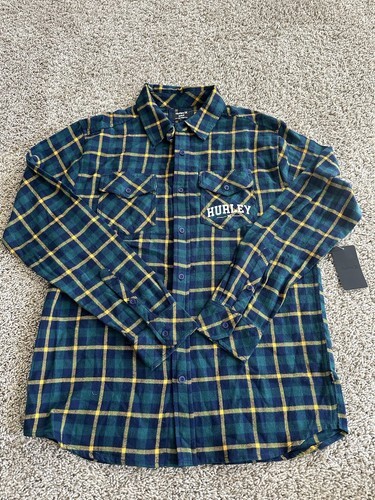 Hurley Men?sflannel Button Down blue green plaid T Shirt Long Sleeve Size Small. Condition is New with tags. Shipped with USPS Ground Advantage.