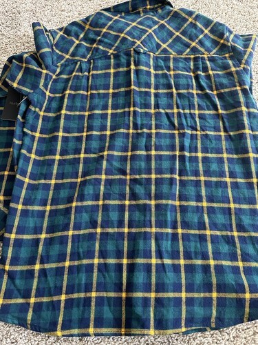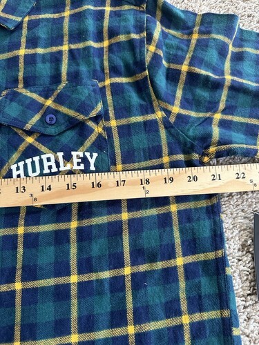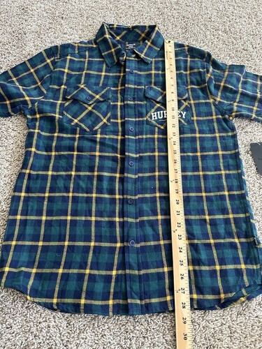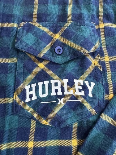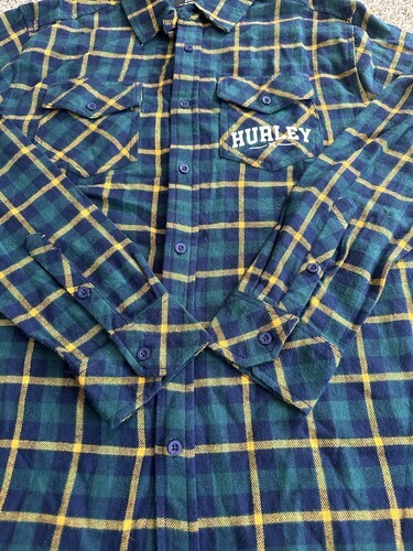 - Hurley Men’sflannel Button Down blue green plaid T Shirt Long Sleeve Size Small