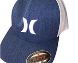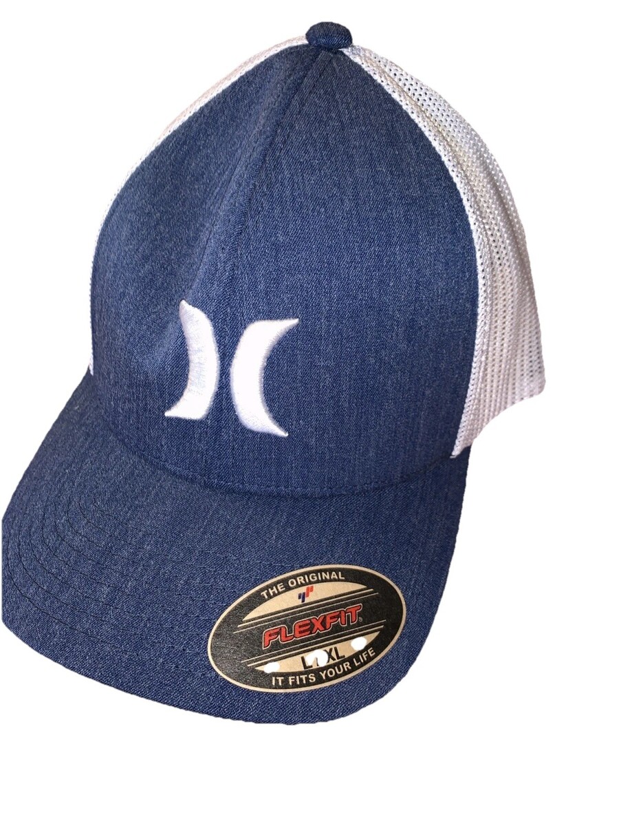 - Hurley Mens L/XL Hat Cap Flex Fit Fitted Blue and White Mesh