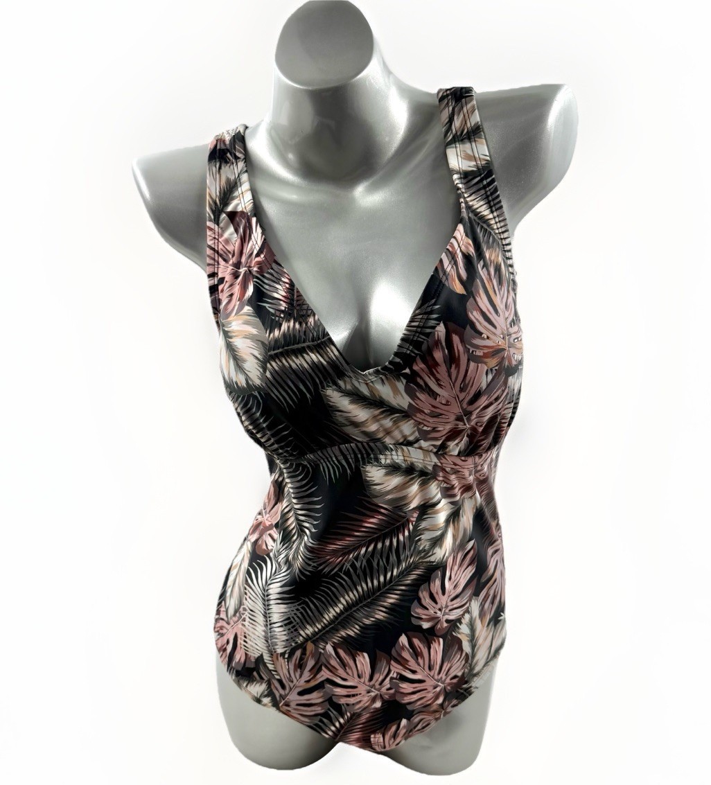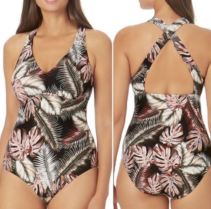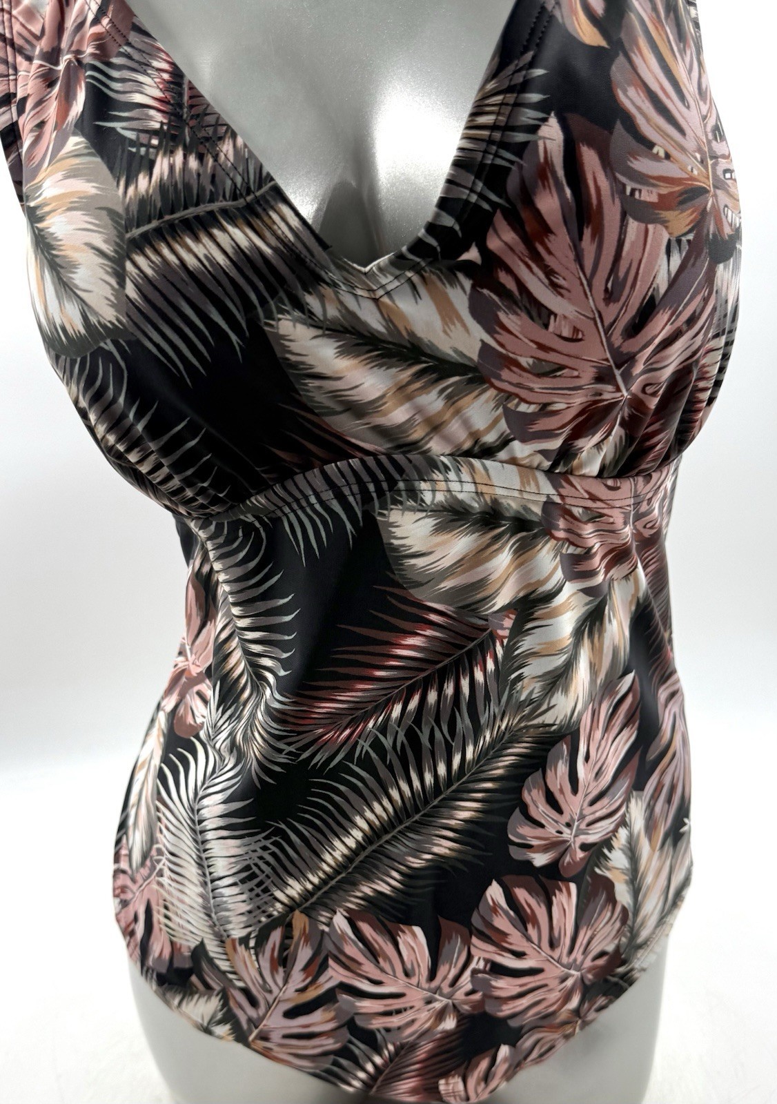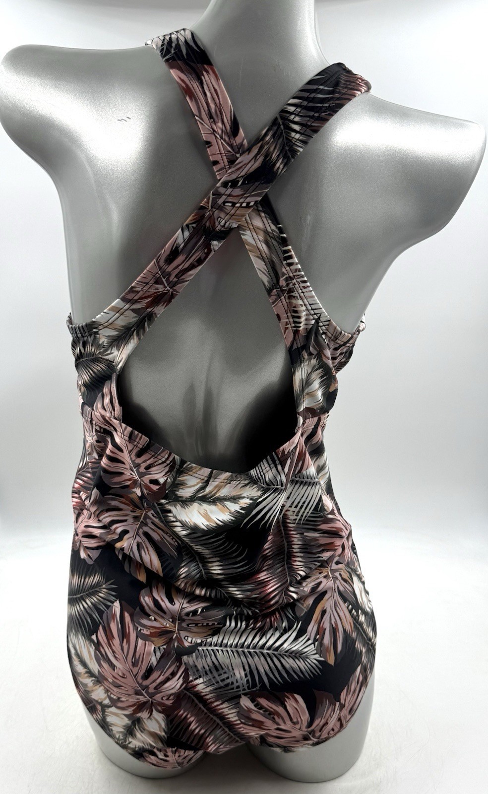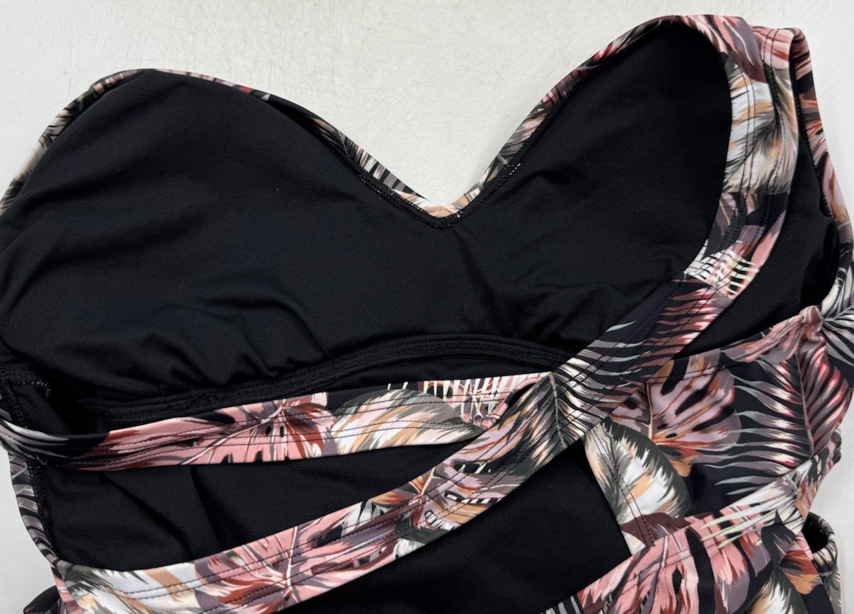 - Hurley One Piece Swimsuit Size XXL Scattered Palm Print Black Pink Womens