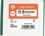 Brand Name: HILLMAN; Size: 1/2 in.; Length: 12 in.; Material: Steel; Product Type: Lag Screw; Number in Package: 25 pk; Head Type: Hex; Grade: 2 no.; Packaging Type: Boxed; Thread Type: Coarse