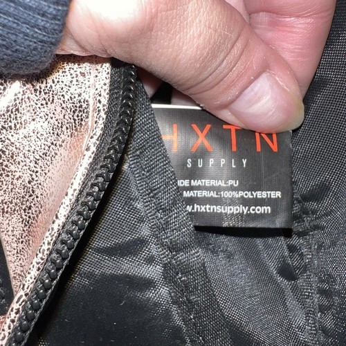This HXTN SUPPLY belt fanny crossbody bag is perfect for any occasion, whether you're traveling or just going out casually. The exterior is made of polyester and PVC with a metallic finish, and features a zip closure and an adjustable crossbody strap. The bag is lined with black polyester and has inner pockets for added organization.