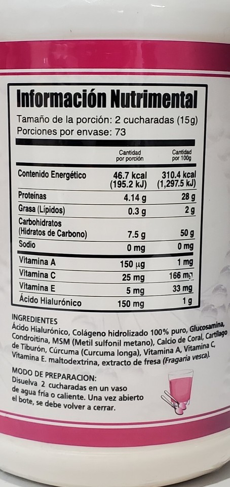 - Hyaluronic Acid/Acido Hialurónico w/Hidrolized Colagen {Strawberry } Powder 1Kg