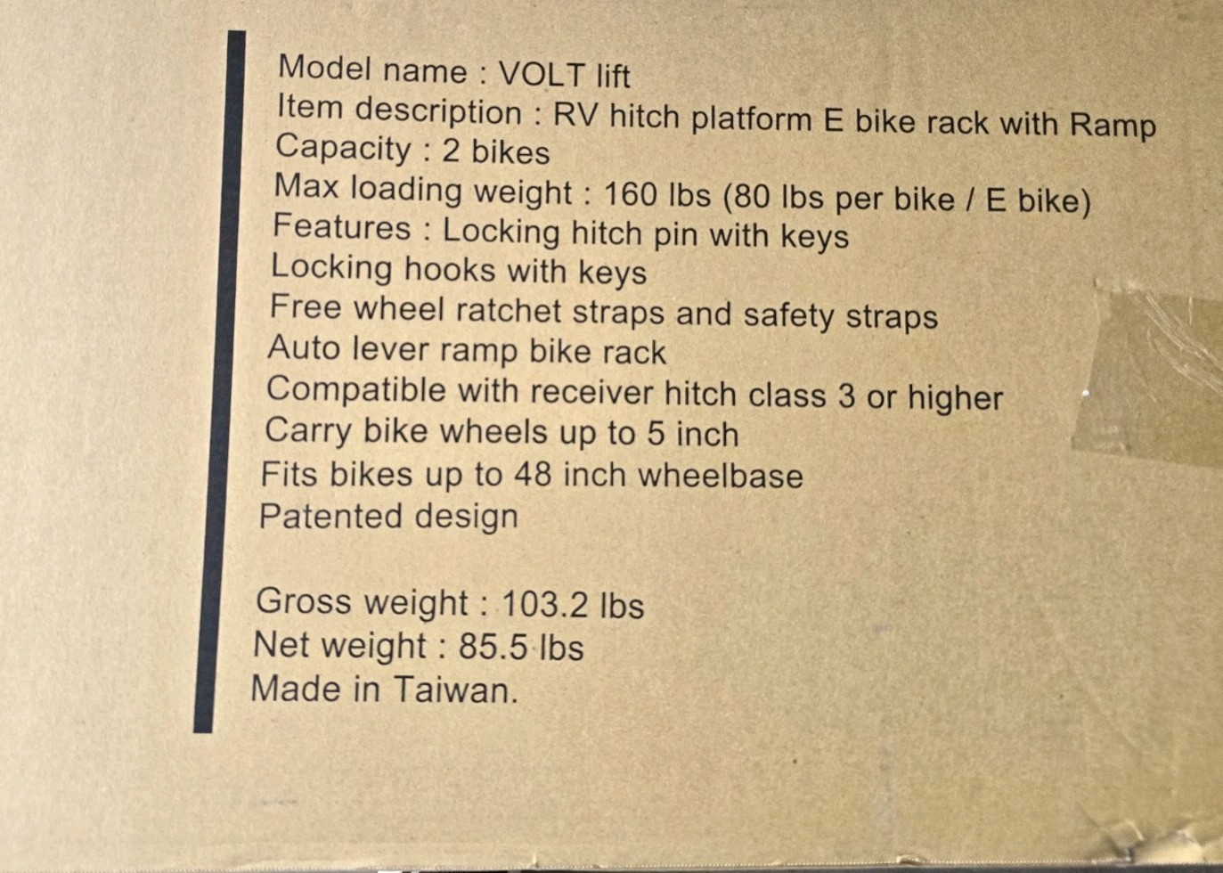 Maximum Capacity and Protection: With a capacity to carry up to TWO e Bikes with weighing up to 80 pounds and having a wheelbase of up to 48 inches, the Volt LIFT SP is perfect for your adventures. The rack provides ample space for heavy e-Bikes with wheels of up to 5 inches in width. We take your e Bike's safety seriously, so each bike is secured with Velcro straps and safety straps during transit.