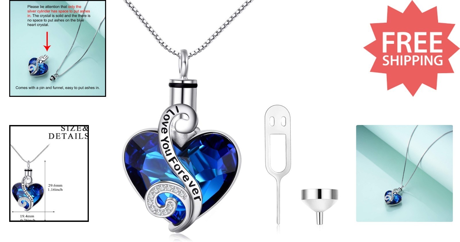 Celebrate eternal love with the Forever Memory urn necklace. Crafted from hypoallergenic 925 sterling silver and accented with Austrian crystals, this meaningful piece features a size-appropriate pendant engraved with "I love you forever". The pendant includes a small cylinder to hold ashes, making it a heartfelt tribute to a loved one?be it family, friends, or pets. The set comes with a pin and funnel for easy filling, accompanied by an 18-inch rolo chain. Perfect as a comforting gift during times of remembrance.