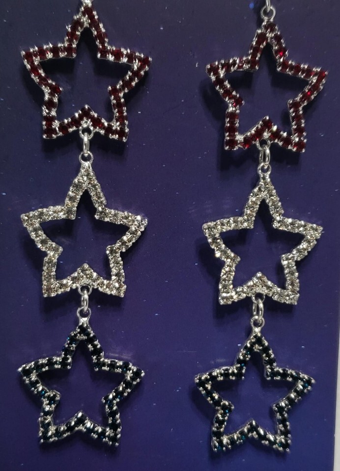 I Am Limited Edition Patriotic Red White Blue Star Dangle Earrings.