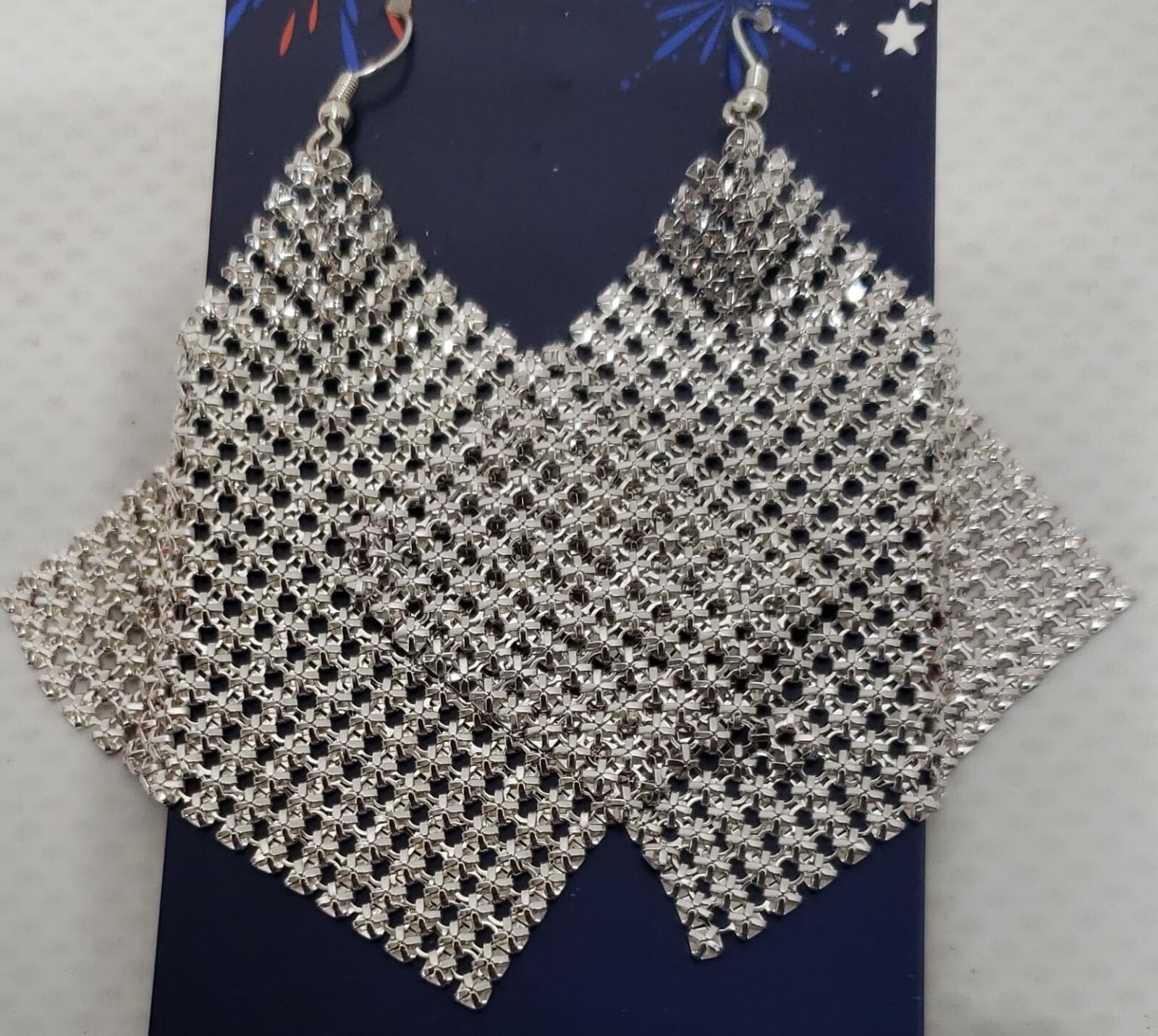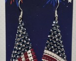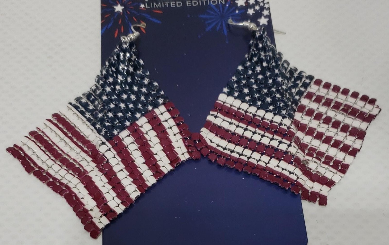 I Am Limited Edition Patriotic Red White Blue USA Flag Metal Mesh Dangle Earring.