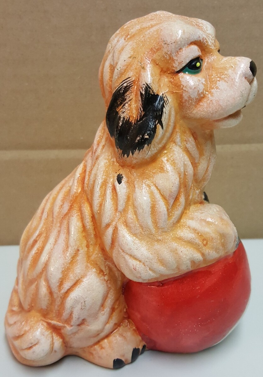 I) Cocker Spaniel Dog Figurine With Ball Home Decor Red White Green 5.5" Tall