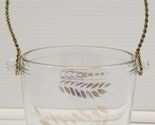 I) Gold Tone Glass Ice Bucket with Gold Braided Rope Handle Floral Leaf Design